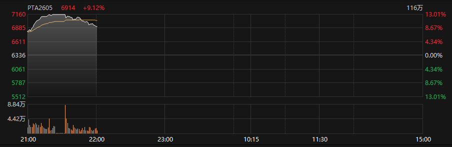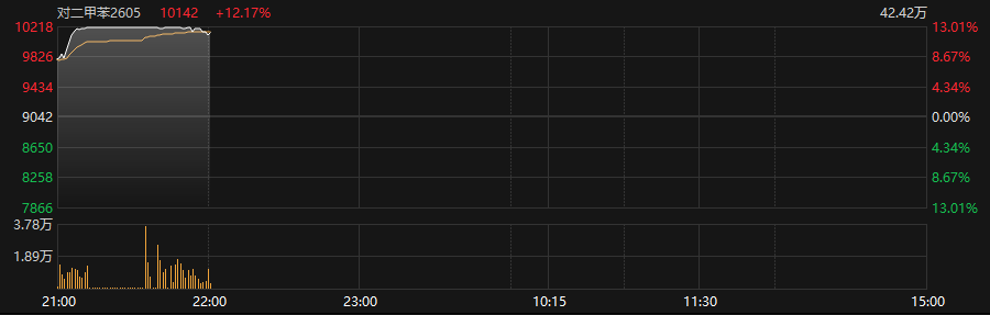 上证报中国证券网讯 3月11日国内期市夜盘交易时段,对二甲苯、PTA主力合约冲高。截至22时,两者分别上涨12.17%及9.12%,盘中均一度涨停。