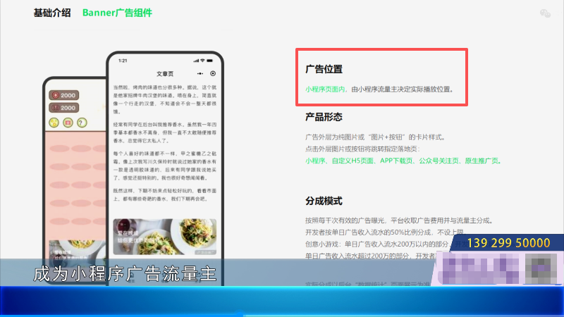 也就是说,广告在哪出现、怎么出现,其实都是由运营小程序的商家说了算,只有广告内容是系统自动匹配的。